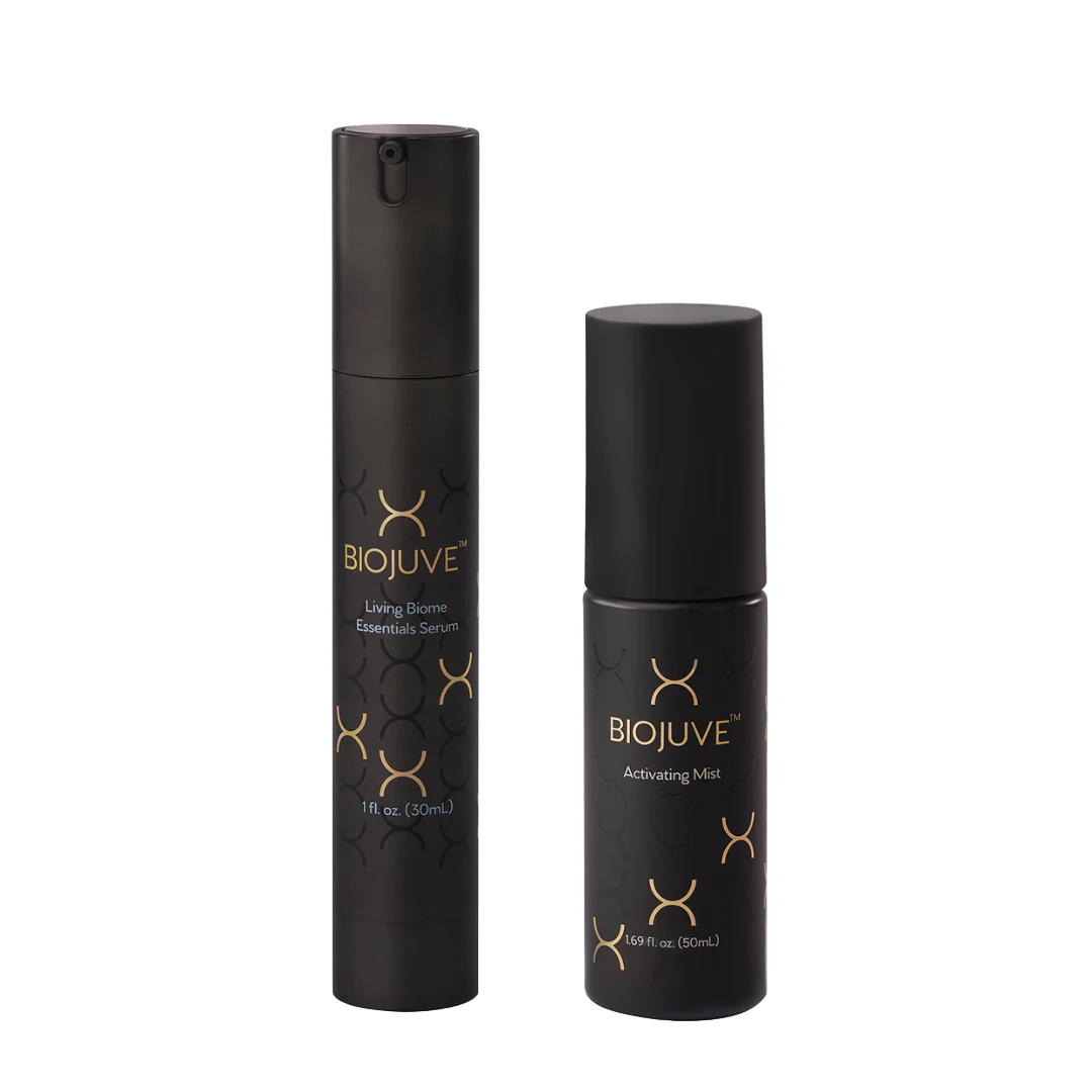 STEPS 2 & 3 of PM Routine. The powerhouse duo of the routine. The smooth and rejuvenating serum includes the BIOJUVE® proprietary skin probiotic technology specifically designed to restore balance to your microbiome for beautiful results, while the light, revitalizing mist acts as the “on” switch, activating the key technology.